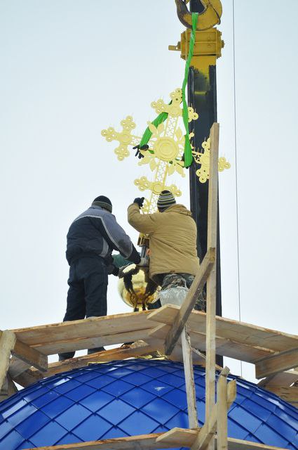 Суразмоўца падзяліўся таксама архіўнымі здымкамі з асвячэння крыжа на купал — менавіта брыгада Алега займалася мантажом.