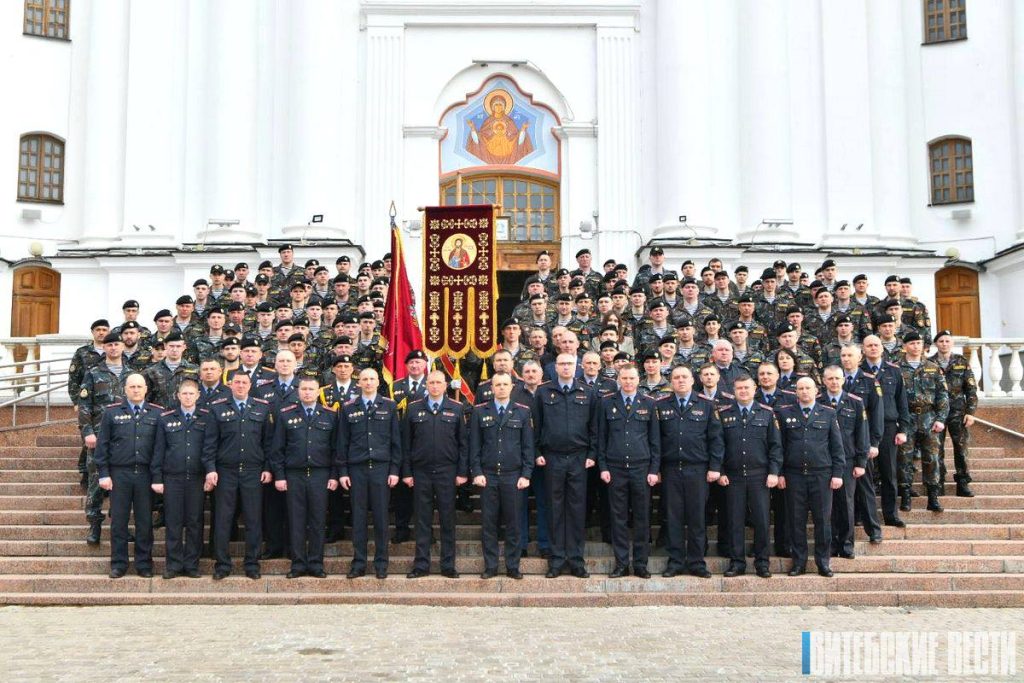Обряд освящения хоругви совершил архиепископ Витебский и Оршанский Димитрий. Иерарх вручил знамя с изображением Александра Невского командиру витебского ОМОНа полковнику милиции Дмитрию Антоненко. Секретарь Витебской епархии протоирей Владимир Резанович окропил силовиков святой водой.