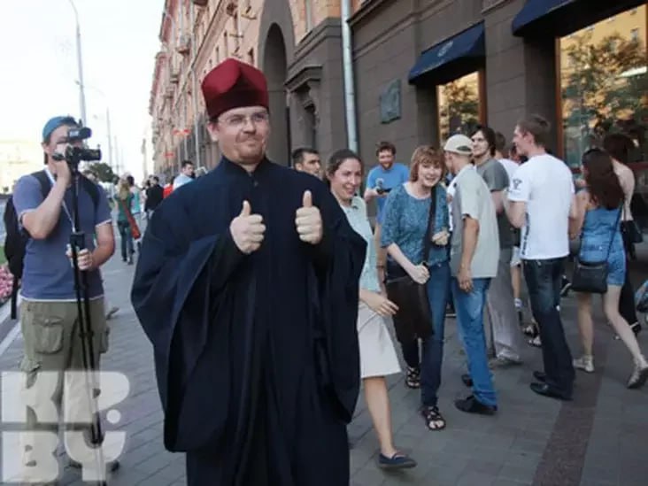 В интервью он рассказывает интересный эпизод с участием в молчаливых протестах 2011 года. В приложенном фотоснимке из «Комсомолки» с того события на заднем плане угадываются две активистки, теперь входящие в так называемое экстремистское формирование «Христианская визия» — Наталля Василевич и Наталля Гаркович.